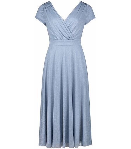 Damen Cocktailkleid aus Satin V-Ausschnitt Rückenausschnitt Kurzarm Tailliert Locker geschnittener Rockteil Unifarben Farbbezeichnung: Blue / Silver Gesamtlänge: 120 cm Länge ab Taille: 78 cm Material: 100% Polyester ...