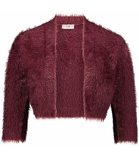 Eleganter Damen Strickbolero aus Viskose-Mischung in Fell-Optik V-Ausschnitt Ohne Verschluss 3/4 Ärmel Figurnahe Passform Unifarben Farbbezeichnung: Wild Ruby Material: 70% Polyamid, 19% Viskose, 11% Polyester ...