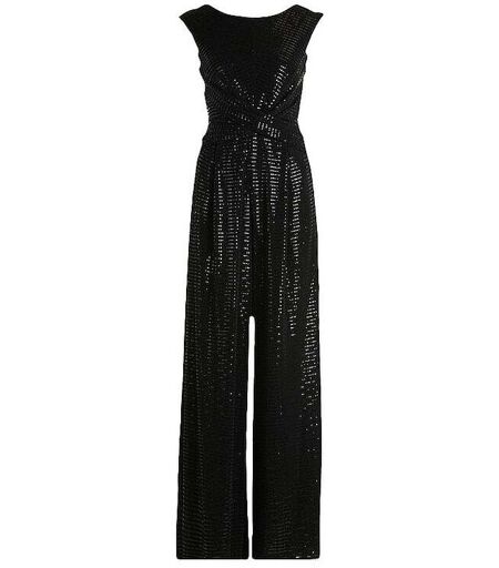 Eleganter Damen Jumpsuit Rundhalsausschnitt Ohne Arm Schließt mit Reißverschluss Seitliche Nahttaschen Raffung vorne Figurbetonte Passform Normale Länge Farbbezeichnung: Black / Black Material: 86% Polyamid, 9% metallisiert Polyester, 5% Elasthan ...