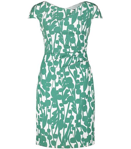 Damen Cocktailkleid aus kompakten Gewebe Asymmetrischer Ausschnitt Kurzarm Allovermuster Taille mit gelegten Falten Tailliert geschnitten Knieumspielend Länge: ca. 100cm Farbbezeichnung: Cream/Green Material: 90% Polyester, 10% Elasthan ...
