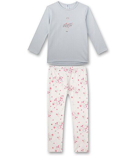 Mädchen Pyjama aus reiner Bio-Baumwolle Rundhalsausschnitt Langarm Print auf der Vorderseite Hose mit bequemen Bund Allover Print Lockere Passform Global Organic Textile Standard (GOTS) Farbbezeichnung: Ballad Blu Material: 100% Bio-Baumwolle ...