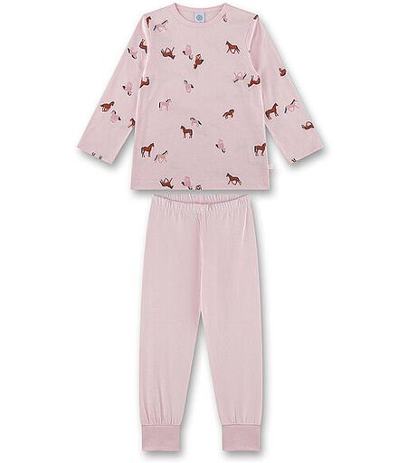 Hübscher Mädchen-Schlafanzug von Sanetta in einem dezenten Rosa mit einem trendigen Pferde-Allover auf dem Schlaf-Shirt. Mädchen Pyjama aus reiner Baumwolle Rundhalsausschnitt Langarm Allover-Pferde-Print im Oberteil Unifarbene Pyjamahose mit elastischem Bund Schmaler Beinverlauf mit elastischem Bündchen Trocknerbeständig Zertifizierung: Oekotex-Standard 100 Farbbezeichnung: Rosa Material: 100% Baumwolle ...
