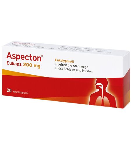 Anwendungsgebiet von Aspecton Eukaps 200mgDas Präparat ein pflanzliches Arzneimittel bei Erkältungskrankheiten der Atemwege.Es wird angewendet zur Besserung der Beschwerden bei Erkältungskrankheiten der Atemwege mit zähflüssigem Schleim.Wenn Sie sich nach 3 Tagen nicht besser oder gar schlechter fühlen, wenden Sie sich an Ihren Arzt.Wirkstoffe / Inhaltsstoffe / Zutaten200 mg EucalyptusölGelatine polysuccinat Hilfstoff (+)Glycerol 85% Hilfstoff (+)GegenanzeigenDas Arzneimittel darf nicht eingenommen werden,wenn Sie allergisch gegen Eukalyptusöl (Cineol, alpha-Pinen) oder einen der sonstigen Bestandteile dieses Arzneimittels sindbei entzündlichen Erkrankungen im Magen-Darm-Bereichbei entzündlichen Erkrankungen im Bereich der Gallenwegebei schweren Lebererkrankungenvon Säuglingen und Kleinkindern bis zu 2 Jahrenbei Asthma bronchiale, Keuchhusten, Pseudokrupp oder anderen Erkrankungen der Atemwege, die mit einer ausgeprägten Überempfindlichkeit der Atemwege einhergehen.DosierungNehmen Sie dieses Arzneimittel immer genau wie beschrieben bzw. genau nach der mit Ihrem Arzt oder Apotheker getroffenen Absprache ein. Fragen Sie bei Ihrem Arzt oder Apotheker nach, wenn Sie sich nicht sicher sind.Die empfohlene Dosis beträgtErwachsene und Heranwachsende ab 12 JahrenEinzeldosis: 1 Weichkapsel (entsprechend 200 mg Eukalyptusöl)Tagesgesamtdosis: 2 bis 3 Weichkapseln (entsprechend 400 - 600 mg Eukalyptusöl)Erwachsene und Heranwachsende ab 12 Jahren nehmen 2 - 3 x täglich 1 Kapsel ein.Bitte sprechen Sie mit Ihrem Arzt oder Apotheker, wenn Sie den Eindruck haben, dass die Wirkung der Kapseln zu stark oder zu schwach ist. Dauer der AnwendungWenn Sie sich nach 3 Tagen nicht besser oder gar schlechter fühlen, wenden Sie sich an Ihren Arzt. Wenn Sie eine größere Menge eingenommen haben, als Sie solltenHalten Sie sich bei der Einnahme des Arzneimittels an die angegebene Höchstmenge in der Dosierungsanleitung oder an die verordnete Dosierung von dem Arzt. Wenn Sie ve ...