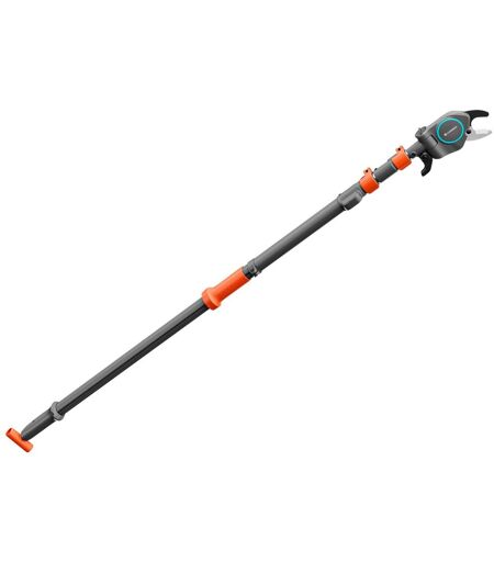 Gardena Teleskop-Baumschneider StarCut Pro L Produktnummer: 0692053223 Starke Performance - einfache Handhabung, mit einer Reichweite von 175 cm - 400 cm für den leichten, bequemen Schnitt von kleineren bis größeren Bäumen in der Krone. Der Baum- und Strauchschneider StarCut Pro L (Bypass) ist die clevere Lösung für herausfordernde Schnitte in unterschiedlichen Höhen. Bis zu zweifache Reichweite Mit dem StarCut Pro L ist kein Ast außerhalb der Reichweite. Die Schneidkraft des teleskopierbaren Baum- und Strauchschneiders wird ergänzt durch herausragende Reichweite, denn er ist teleskopierbar von 175 cm bis zu 400 cm. Mehr als doppelte Reichweite. Das bietet eine Gesamtreichweite von ca. 6,5 Metern je nach der Größe / Höhenposition des Benutzers. Durch die zweifache Teleskopfunktion ist dieser Baumschneider flexibel in größeren und kleineren Bäumen anwendbar. Dies ermöglicht eine schnelle und präzise Handhabung, auch beim Schneidvorgang. Der kompakte Schneidkopf mit innenliegendem Zugband verhindert das Hängenbleiben im Geäst für einfaches, störungsfreies Schneiden. Sein Schneiddurchmesser von maximal 32 mm macht auch mit dicken Ästen kurzen Prozess. Starke Schneidkraft Mit präzisionsgeschliffenen Klingen aus Qualitätsstahl und dem innenliegenden Getriebe aus Stahl bietet der GARDENA StarCut Pro L müheloses Schneiden, während der kompakte Schneidkopf problemlos Zugang zum Astansatz gibt. Dank austauschbarer Klingen können Benutzer schnell und einfach, mühelos und ohne Werkzeug einen Klingenwechsel vornehmen. Saubere Schnitte Präzisionsgeschliffene Klingen aus Qualitätsstahl in Kombination mit GARDENAs innovativem PowerCoating sorgen für saubere Schnitte und gesunde Pflanzen. Diese Beschichtung trägt dazu bei, Reibung zu reduzieren und die Schneideffizienz zu verbessern. Außerdem lässt sie einfacheres Reinigen der Klingen zu und schützt die Klingen vor Korrosion. Intuitive Ergonomie Der GARDENA StarCut Pro L bietet eine hervorragende Reichweite, komfortabel vom Boden aus - ganz ohne Leiter. Der verbesserte untere Griff lässt sich sicher und bequem greifen; ein T-Griff sorgt für besseres Halten und Stabilisieren. Ein Hebel ermöglicht schnelles und einfaches Teleskopieren, und für zusätzlichen Komfort kann der Schneidwinkel ohne Weiteres vom Boden aus justiert werden. Dank des schlanken Produktdesign und der zweifachen Teleskopfunktion ist dieser praktische Baum- und Strauchschneider einfach zu transportieren und unkompliziert zu lagern. Lang anhaltende Schärfe made in Germany Nach GARDENAs anspruchsvollen Standards in Deutschland hergestellt sind die Klingen mit PowerCoating des teleskopierbaren StarCut Pro L auf dauerhafte Schärfe ausgelegt, um Jahr für Jahr Präzisionsschnitte zu ermöglichen. Klingenlänge: 3,9 cm Max. Schnittleistung: 3,2 cm Material: Metall Länge Stiel: 175 cm Gewicht: ca. 2,8 kg Material Griff: Aluminium und rutschfesten Kunststoff Farbe: grau, orange Teleskopierbare Reichweite von 175 cm bis 400 cm Verstellbarer Schneidkopf... ...