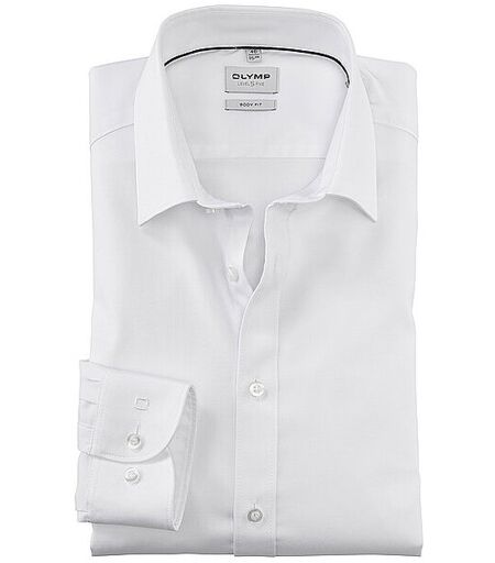 Herren Hemd aus Baumwoll-Stretch Feines Gewebe aus Baumwolle mit leichtem Stretch-Anteil Extralanger Ärmel Attraktive, körpernahe Body-Fit-Silhouette Unifarben Farbbezeichnung: Weiss Material: 97% Baumwolle/ 3% Elastolefin (®XLANCE) Die Marke OLYMP ist Mitglied der Fair Wear Foundation. ...