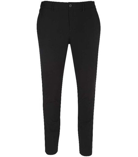 Herren Chino Bund mit elastischem Einsatz Schließt mit Knopf, Gegenknopf und Reißverschluss Mittlere Leibhöhe Seitliche Eingriffstaschen Unifarben Gesäßtaschen Schmaler Beinverlauf Farbbezeichnung: Black Material: 89% Polyamid 11% Elasthan ...