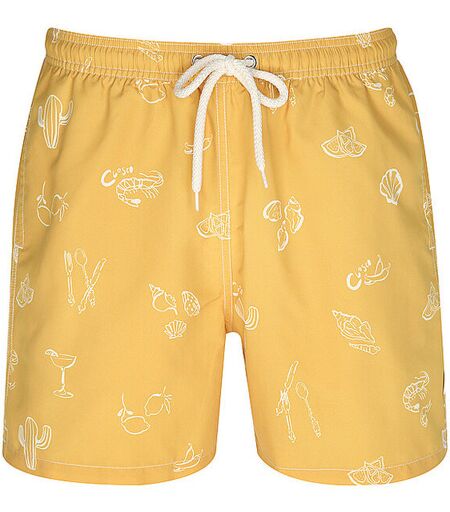 Herren Badeshorts aus schnelltrocknendem Material Stretchbund mit Tunnelzug und Logo-Band Seitliche Eingrifftaschen Aufgesetzte Gesäßtasche mit Klettverschluss Art-Work-Print Mesh-Futter Farbbezeichnung: Mango Yellow Material: 100% Polyester Die Marke Closed ist Mitglied der Fair Wear Foundation. ...