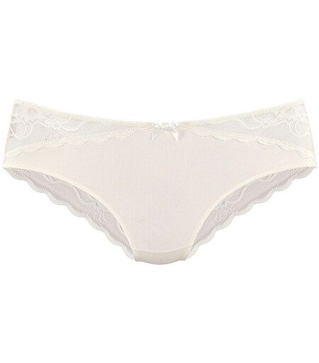 Damen Slip aus hochwertiger Microtouch-Qualität Hüftiger Sitz Spitze vorne und an den hinteren Beinausschnitten Kleine Zierschleife in der vorderen Mitte Mit eingearbeitetem Baumwollzwickel Abgesteppte Kanten Farbbezeichnung: Cream Material: 90% Polyamid, 10% Elasthan ...
