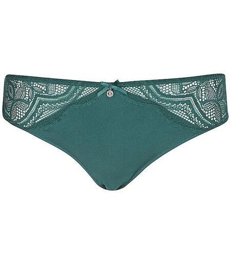 Femininer Damen Slip mit floralen Spitzen-Details Kleine Zierschleife und edle Glitzer-Details Eingearbeiteter Baumwollzwickel Hoher Beinausschnitt Farbbezeichnung: Fir Green Material: 88% Polyamid, 12% Elasthan ...