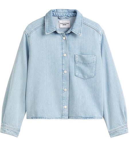 Damen Jeansbluse aus Denim Organic Cotton Lyocell-Mix Kragen Langarm Schließt mit Knopfleiste Eingrifftaschen Gewaschene Optik Gerade und leicht verkürzt geschnitten Farbbezeichnung: Light Blue Multi 24 Material: 78% Baumwolle, 22% Lyocell Die Marke Marc O`Polo ist Mitglied der Fair Wear Foundation. ...