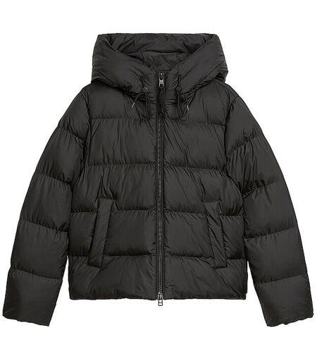 Cool, dick gefüttert, kuschelig warm und aus recyceltem, wasserabweisendem Polyester hergestellt: Die lässige, kurze Pufferjacke mit fixierter, praktischer Kapuze. Das Outerwear-Modell von Marc O’Polo DENIM ist mit einer daunenähnlichen Wärmeisolierung gefüllt, die aus recyceltem PET hergestellt wurde und Abfall in wärmenden Komfort verwandelt. Die ultraleichte und besonders pflegeleichte Fibre-Balls-Füllung kehrt nach dem Waschen in ihre ursprüngliche Form zurück. Der Schnitt ist bequem und normal. Zu den Features gehören eine innovative Kordelzug-Lösung an der Kapuzenkante, ein Ärmelabschluss mit feingeripptem, kompaktem Strickbündchen, das als Schneefang dient, ein unterlegter Frontreißverschluss, geräumige Leistentaschen mit Druckknopfverschluss und ein Tunnelzug mit elastischer Kordel am Saum. Innen verfügt sie über eine praktische Tasche und einen plakativen Logo-Print. Damen Steppjacke mit warmer Wattierung Stehkragen mit Kapuze und Tunnelzug Schließt mit Zwei-Wege-Reißverschluss Langarm Seitliche Eingrifftaschen Gerade Passform Unifarben Farbbezeichnung: Black Material: 100% recycelter Polyester Die Marke Marc O`Polo ist Mitglied der Fair Wear Foundation. ...