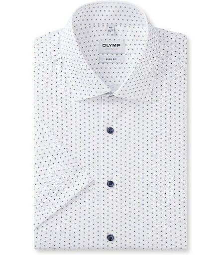 Herren Hemd aus weichem Baumwoll-Mix Kentkragen Kurzarm Schließt mit Knopfleiste Minimalprint Schmale Passform Bügelleicht Farbbezeichnung: 00 Material: 97% Baumwolle 3% Elasthan Die Marke OLYMP ist Mitglied der Fair Wear Foundation. ...