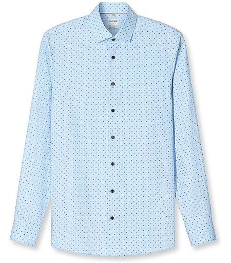 Herren Hemd aus hochwertigem Baumwoll-Mix Kentkragen Langarm mit Manschette Schmal geschnitten Allover Print Schließt mit Knopfleiste Farbbezeichnung: Hl. Blau/Braun Material: 64 % Baumwolle, 27 % Polyester, 9 % Elasthan Die Marke OLYMP ist Mitglied der Fair Wear Foundation. ...