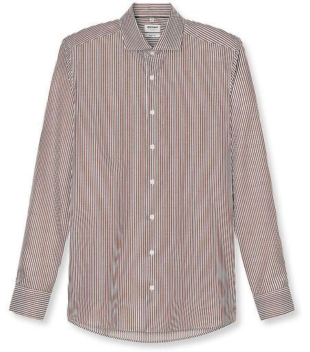 Herren Hemd aus reiner Baumwolle Kentkragen Schließt mit Knopfleiste Langarm mit geknöpften Manschetten Streifenmuster Schmale Passform Farbbezeichnung: Weiss / Braun Material: 100% Baumwolle Die Marke OLYMP ist Mitglied der Fair Wear Foundation. ...