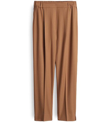 Die locker geschnittene Schlupfhose in edler Twilloptik überzeugt mit businesstauglichem Look und vielseitiger Kombinierbarkeit. Ein echter Allrounder, der Sie stilvoll und souverän durch den Tag begleitet. Damen Hose aus Viskose-Mischung Mittlere Bundhöhe Elastischer Gummibund Französische Taschen Zier-Pattentaschen am Gesäß Kleine Schlitze in den Seiten Bügelfalten Schmal zulaufendes Bein Verkürzte Länge Unifarben Farbbezeichnung: Golden Oak Material: 65% Polyester, 32% Viskose, 3% Elasthan ...