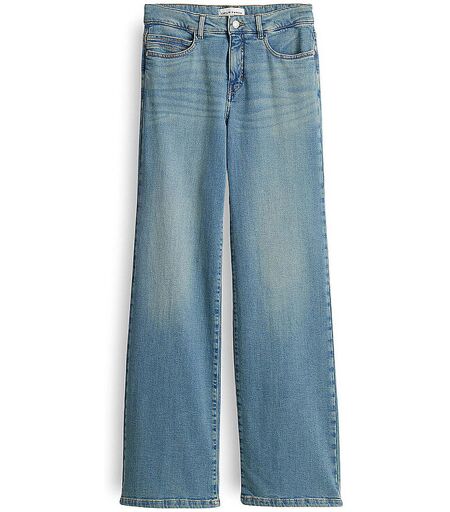 Die Wide Leg Jeans ist ein absolutes Trend-Piece: Authentischer Blue-Denim mit angesagter Used-Waschung, klassischem 5-Pocket-Design und weitem, geradem Beinverlauf. Modern, lässig und vielseitig kombinierbar – perfekt für stylische Casual-Looks. Damen Jeans aus Baumwoll-Mischung mit hohem Stretch-Anteil Mittlere Leibhöhe Schließt mit Knopf- und Reißverschluss Weiter, gerader Beinverlauf Authentische Waschnung Power Stretch Unifarben Farbbezeichnung: Light Ice Blue Material: 66% Baumwolle, 23% Modal, 9% Elastomultiester, 2% Elasthan ...