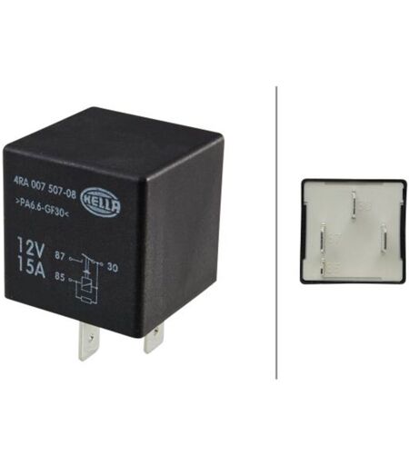 Ergänzende Info: Minirelais, mit Widerstand, ohne Halter. Farbe: Schwarz. Hersteller: HELLA. Herstellernummer: 4RA 007 507-081. Index: 4RA007 507-081. Induktive last [a]: 15. Kapazitive last [a]: 15. Ohmsche last [a]: 15. Pol-anzahl: 4. Relaisfunktion: Komfortausstattung, Einparkhilfe, ABS, Abblendlicht, Fernlicht, Beheizte Heckscheibe, ESP, Fensterheber, Starter, Hupe, Klimaanlage, Lichtschalter, Lüfter, Heizung-/Klimaanlage, Innenraumgebläse, Klemme 15, Tagfahrlicht, Verdeckhydraulik, Zentralverriegelung, ABS-Rückförderpumpe, Außenspiegelverstellung, beheizbarer Außenspiegel, elektrischer Zuheizer, Innenraumbeleuchtung, Klemme 15R, Klemme 87, Kraftstoffpumpe, Lambdasonde, Lüfter, Motorkühler, Nebelscheinwerfer, Scheibenwischer, Scheibenwischerablagenheizung, Schiebedach, Sekundärluftsystem, Sitzheizung. Schaltbild: X. Schalterfunktion: Schließer. Schutzart (IP-Code): IP54. Spannung [V]: 12. Steckerausführung-id: X. Temperaturbereich bis [°c]: +70. Temperaturbereich von [°C]: -40. ...