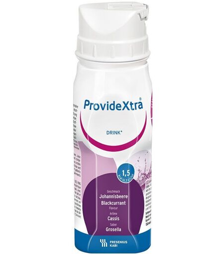 ProvideXtra® DRINK Hochkalorisch mit 1,5 kcal / ml und rein pflanzlichem, hydrolisiertem Eiweiß. Voll resorbierbar. Frei von Fett, Ballaststoffen und Milcheiweiß. Zutaten: Wasser, Maltodextrin, Zucker, Erbseneiweißhydrolysat, Säureregulator (E330), Aromen, Calciumcitrat, Magnesiumcitrat, Vitamin C, Kaliumchlorid, Magnesiumchlorid, Stabilisator (E440a), Kaliumcitrat, Eisencitrat, Vitamin E, Zinksulfat, Niacin, Pantothensäure, Schaumverhüter (E471), Manganchlorid, Kupfersulfat, Vitamin B6, Vitamin B2, Natriumfluorid, Vitamin B1, Vitamin A, Folsäure, Kaliumjodid, Chromchlorid, Natriumselenit, Vitamin K1, Natriummolybdat, Biotin, Vitamin D3, Vitamin B12. Nährwerte pro 100 ml Energie 150 kcal Eiweiß 4 g Fett 0 g Kohlenhydrate 33,5 g Ballaststoffe 0 g Wasser 75 ml Verzehrempfehlung: Mittlere Tagesdosis zur ergänzenden Ernährung: 2 - 3Easydrinks. Nicht geeignet für Kinder < 1 Jahr. Bei Kindern < 6 Jahren mit Vorsicht verwenden. Hinweis: Die angegebene empfohlene Tagesmenge darf nicht überschritten werden. Aufbewahrung: Kühl (6-25 °C) und lichtgeschützt lagern. Außerhalb der Reichweite von Kindern aufbewahren. Nettofüllmenge: 4 x 200 ml Hersteller: Fresenius Kabi Deutschland GmbH 61346 Bad Homburg ...