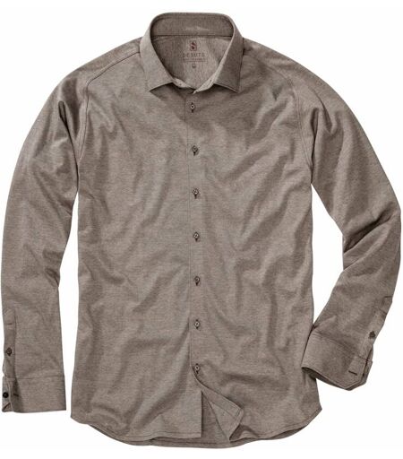 Businesshemd neu gedacht. Die oberfränkische Hemdenmanufaktur Desoto hat ein Hemd entwickelt, das sich trägt wie ein T-Shirt, optisch einem korrekten Businesshemd jedoch in nichts nachsteht. Der Stoff ist ein weicher Jersey aus Öko-Tex-zertifizierter supergekämmter Baumwolle - elastisch, besonders glatt und angenehm auf der Haut. Der Schnitt ist schlank und sieht richtig gut aus - der Raglanärmel sorgt für Bewegungsfreiraum. Für Termine mit dunkler Chino (Hemd in der Hose), ansonsten gern auch über der Hose (Länge und abgerundeter Saum sind für beide Tragevarianten entworfen). ...