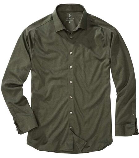 Businesshemd neu gedacht. Die oberfränkische Hemdenmanufaktur Desoto hat ein Hemd entwickelt, das sich trägt wie ein T-Shirt, optisch einem korrekten Businesshemd jedoch in nichts nachsteht. Der Stoff ist ein weicher Jersey aus Öko-Tex-zertifizierter supergekämmter Baumwolle - elastisch, besonders glatt und angenehm auf der Haut. Der Schnitt ist schlank und sieht richtig gut aus - der Raglanärmel sorgt für Bewegungsfreiraum. Für Termine mit dunkler Chino (Hemd in der Hose), ansonsten gern auch über der Hose (Länge und abgerundeter Saum sind für beide Tragevarianten entworfen). ...