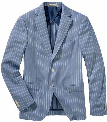 Eines, das sich mit Leichtigkeit trägt. Ein Anzugsakko, das aus einer italienischen Leinenmischung besteht, ist wie gemacht für besondere Anlässe an heißen Tagen. Zusätzlich trägt es noch eine sogenannte Man-made-Zellulosefaser in sich, das Lyocell (TENCEL(TM) aus dem Hause Lenzing) macht es leicht und geschmeidig, darüber hinaus ist das Tuch nachgiebig - eine Seltenheit bei Sommeranzügen. Unser italienischer Weber aus Sondrio hat dem Stoff einen kristallklaren Nadelstreifen verpasst, der hochoffiziellen Anlässen gerecht wird und im Business eine Spur informierter aussieht als ein unifarbenes Anzugsakko. Als Anzug kombiniert mit gleichnamiger Hose (Nr. 24-2582). ...