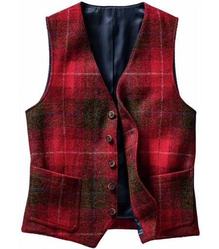 Handwoven by the islanders at their homes in the Outer Hebrides, finished in the Outer Hebrides, and made from pure virgin wool dyed and spun in the Outer Hebrides. Nur wenn ein Tweed diese Anforderungen erfüllt, darf er den berühmten Reichsapfel, den "Guardian of the Orb" tragen. Wie jeder dieser ursprünglichen Tweedstoffe steht auch diese Weste für Qualität und Zeitlosigkeit - unverwüstlich und universell tragbar. Das warme Rostrot mit dem exakt abgepassten, blauen Überkaro geht immer zu Denim, wunderbar zu Weiß und Blau und mit etwas Fingerspitzengefühl auch zu Grün und Orange. ...