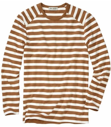 Streifen-Challenge accepted. Die Querstreifen und der körperbetonte Schnitt zeigen, was da ist. Oder motivieren zu Crunches. Dank der Rippen ist das Shirt standfester als von einem Longsleeve erwartet. Der querelastische Baumwollstoff mit einem Schuss Elasthan ist superbequem und geht beim Sprung an die Klimmzugstange im Türrahmen geschmeidig mit. Sportsfreunde: Jeans und Sneakers. ...