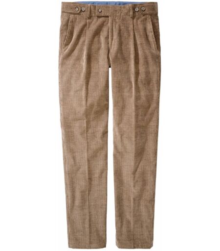 Gerne gesehen in den Uffizien. In der Hose aus zweifarbig gewebtem Cord bewegen Sie sich mit Grandezza durch das winterliche Florenz. Die fein ziselierte Rippenstruktur und die Bügelfalte werden in jedem Museum oder Restaurant dies- und jenseits der Alpen durchgewunken. Der robuste Baumwollstoff liegt weich auf der Haut. Fällt aus dem Mode-Rahmen: der Bund mit Riegel und Knöpfen. Mit gebügeltem Hemd, geputzten Lederschuhen und Espresso in der Hand. ...
