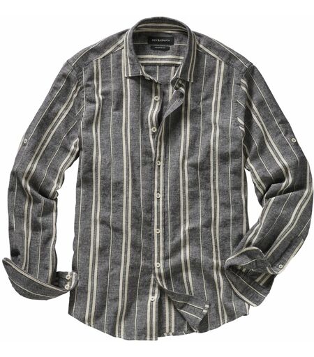 Musterbeispiel für Ungezwungen. Streifenhemden wirken gerne mal eine Spur zu formell, gestelzt, managerhaft und fast schon kleinkariert. Hier der konsequente Gegenentwurf zum Business-Hemd, der garantiert in kein GF-Meeting oder zum Anzug passen will. Okay, wenn wir schon so frei sind: Ein fast schon achtlos übergeworfener Leinenanzug geht vielleicht doch, gern in naturweiß, passend zum Strand wie auch zu den Sandalen, und auf keinen Fall zugeknöpft. So entspannt können Streifen sein. ...