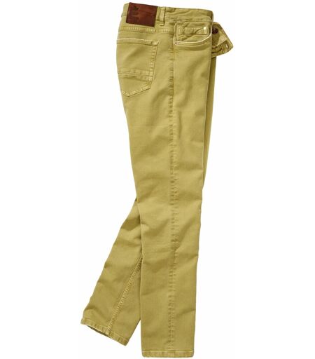Schwer zu finden. Eine Five Pocket, die eben keine klassische Bluejeans ist, ist selten. Dank Garment-dyed-Verfahren, bei dem die fertig konfektionierte Hose erst im Ganzen gefärbt wird, erhält diese den lässigen Used-Look an den Kanten. Der Rest ist solides Hosenhandwerk mit vertrauten Elementen: Münztasche, Nieten, Lederpatch. Modische Brüche schaffen Sie in Kombination mit piekfeinem Hemd und polierten Schuhen - aber eigentlich sucht diese Hose die Nähe zu Lederjacke und Rolli. ...