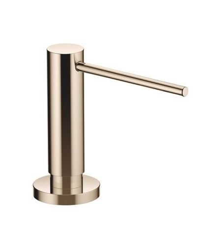 Dornbracht Spender mit Rosette - Champagne (22kt Gold) Ausladung 124 mm 500 ml Flaschenvolumen von oben befüllbar schwenkbarer Pumpenkopf Höhe 124 mm Rosette Ø 55 mm Bohrungsdurchmesser 25 mm Passt zu ELIO, ENO,MEM, META SQUARE, SYNC, TARA und TARA ULTRA ...