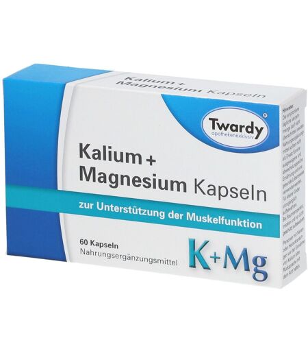 Nahrungsergänzungsmittel sind kein Ersatz für eine ausgewogene und abwechslungsreiche Ernährung und eine gesunde Lebensweise. Kalium + Magnesium Kapseln Nahrungsergänzungsmittel mit Kalium und Magnesium Zutaten:Kalium (Trikaliumcitrat), Magnesium (Trimagnesiumdicitrat), Gelatine, Füllstoff: Calciumphosphat, Trennmittel: Magnesiumsalze der Speisefettsäuren, Siliciumdioxid, Farbstoffe: , Eisenoxide und -hydroxide. Ohne Gluten und Lactose. Zusammensetzung Tagesdosis (3 Kapseln) % der empf. Tagesdosis* Kalium 299 mg 15 Magnesium 69 mg 18 * Referenzmenge nach EU-Lebensmittelinformationsverordnung Verzehrempfehlung: 3 x täglich 1 Kapsel mit reichlich Flüssigkeit zu den Mahlzeiten schlucken. Die empfohlene tägliche Verzehrmenge darf nicht überschritten werden. Hinweis: Personen mit Nieren- oder Herzerkrankungen vor der Einnahme von Kalium bitte Rücksprache mit dem Arzt halten. Lagerhinweis: Für kleine Kinder unzugänglich aufbewahren. Kühl, trocken und vor Licht geschützt aufbewahren. Nettofüllmenge: 60 Kapseln = 40 g Hersteller: Astrid Twardy GmbH Feringastr. 4 D-85774 Unterföhring ...