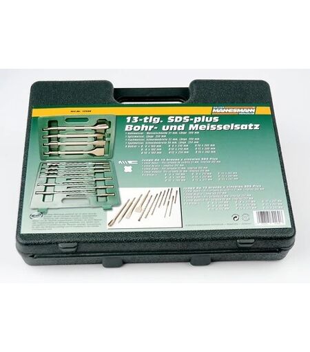 MANNESMANN SDS-Bohrer- und Meisselsatz, 13-tlg. zum Bohren und Meißeln in Mauerwerk, Beton, Naturstein und Klinker Eigenschaften: im praktischen Kunststoff-Koffer ...
