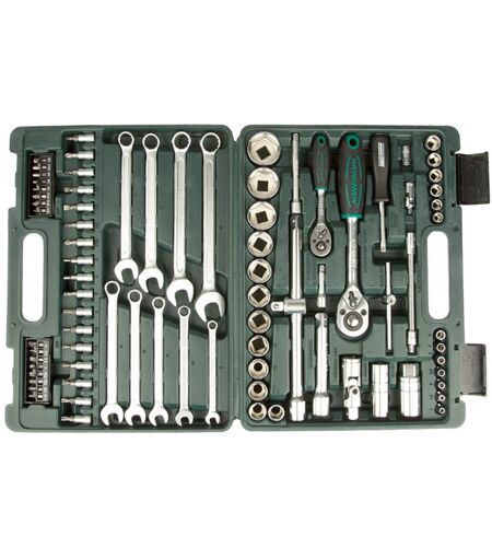 MANNESMANN Werkzeugkoffer Dieser hochwertige 82-teilige Werkzeugkoffersatz beinhaltet alles für verschiedenste Arbeiten im Haus, Hobby und Werkstattbereich. Sämtliche Teile entsprechen in Bezug auf Härte, Drehmoment und Maßhaltigkeit den gültigen DIN-Normen. Eigenschaften: Material: CrV-Stahl Antrieb: 1/4 und 1/2 Zoll Gewicht: 6 kg Koffermaß: 38 x 28,8 x 8,2 cm Inhalt: 1 Satz im Kunststoffkoffer ...
