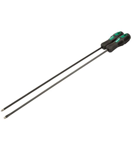 MANNESMANN Schraubendrehersatz (2-tlg.) Dieser 2-teilige Schraubendrehersatz mit rutschhemmender Griffe und extra langer Klinge ist geeignet für Arbeiten an schwer erreichbaren Stellen z. B. am Auto oder Transporter. Eigenschaften: Material: CrV-Stahl Klingenlänge: 450 mm Schlitzschraubendrehergröße: 1,2 x 6,5 x 450 mm Kreuzschraubendrehergröße: PH 2 x 450 mm Inhalt: 2 Stk. ...