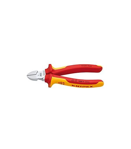KNIPEX Seitenschneider 70 06 180, 180mmVDE-Seitenschneider Nr. 70 06 180 Kopf verchromtGriffe mit Mehrkomponenten-KunststoffhüllenVanadium-Elektrostahlgeschmiedetmehrstufig ölgehärtetIsoliert bis 1000 V nach IEC 60900EN 60900 und VDE 0682 Teil 201DIN ISO 5749Schlanke Kopfform für den Einsatz in schwer zugänglichen Arbeitsbereichen Sauberer Schnitt bei dünnen Cu-Drähten auch an den Schneidenspitzen ...