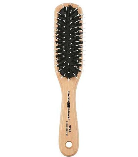 Mit reinen Wildschweinborsten und ca. 5 mm längeren hitzebeständigen Polyamidstiften besetzt zum optimalen Ordnen der Haare. ...
