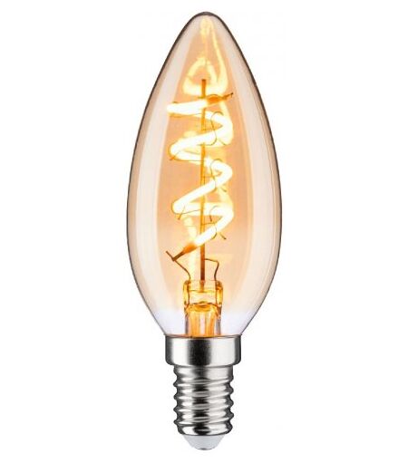 Paulmann Vintage Edition LED Kerze E14 230V 150lm 4W 1800K dimmbar Gold Die dimmbare Kerzenlampe mit einer Leistung von 4 Watt eignet sich durch ihre schmale Bauform besonders für den Einsatz in Lüstern, Wand- und Deckenleuchten. Sie hat eine gemütliche goldene Lichtfarbe und passt in jede handelsübliche E14-Fassung. aus hochwertigem Vollglas warmes und wohnliches Licht im Stil des Kohlefadens effiziente LED-Technik dimmbar Produktdetails Abmessung (Höhe x Breite x Tiefe): H: 98 mm Durchmesser: 35 mm Spannung: 230 V Farbe: Gold Bauform: Kerze Farbtemperatur Bereich: 1.800 K Dimmbar: mit Dimmer R+C f.elektr.Trafo + 230V Lampen Technik: LED Lebensdauer: 15.000 h Anzahl Bestückung: 1x Bemessungs- / Nutzlichtstrom: 150 lm Bestückung: 4 W Bemessungslebensdauer: 15000 h Bemessungsleistung: 4 W Energieverbrauch: 4 kWh_1000h Farbkonsistenz: 80 Ra Leistungsfaktor: 1 Nennlichtstrom (Lumen): 150 lm Lichtstromerhalt am Ende der Nennlebensdauer: 75 % Lichtstromwinkel: 360 ° Sockel/Fassung: E14 Zündzeit <: 0 s ...