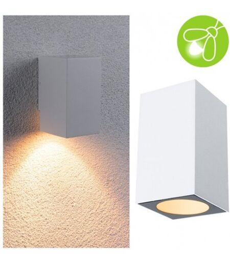 Paulmann LED Außenwandleuchte Flame insektenfreundlich IP44 eckig 58x103mm 2200K 4W 265lm 230V 75° Weiß Metall Die Außenwandleuchte Flame in Weiß bringt Licht an Außenwände. Sie trägt zur besseren Orientierung in der Dunkelheit bei und sorgt für mehr Sicherheit. Die Leuchte mit einer Lichtfarbe von 2.200 K ist besonders insektenfreundlich, denn dieser Wert liegt außerhalb des sichtbaren Bereiches für Insekten, somit werden diese nicht von der zusätzlichen Lichtquelle angezogen. Sie schützt die Insekten aktiv, ohne dabei den Nutzen für den Menschen zu vernachlässigen. Das warme Goldlicht schafft eine angenehme Stimmung rund ums Haus. Zudem ist sie robust und dank effizienter LED-Technik sehr wartungsarm und langlebig. Aktiver Schutz von Insekten durch bewussten Einsatz der Farbtemperatur Goldene Lichtfarbe sorgt für eine gemütliche Atmosphäre wie bei Kerzenschein Farbtemperatur: 2200K - Goldlicht IP-Schutz: IP44 - spritzwassergeschützt Für den Einsatz im Außenbereich geeignet Für attraktive Lichtakzente an Außenwänden Für gemütliches und insektenschonendes Abendlicht Goldlicht – aktiver Schutz von Insekten & eine angenehme Lichtstimmung rund ums Haus Dekorative Lichteffekte setzen die Wand in Szene Effiziente LED-Technik Produktdetails Abmessung (Höhe x Breite x Tiefe): H: 75 x B: 58 x T: 103 mm Trafo Breite: 29 mm Trafo Tiefe: 59 mm Trafo Höhe: 21 mm Inklusive Leuchtmittel: ? aufgenommene Leistung: 5,2 W Spannung: 230 V Farbe: Weiß Material: Metall Farbtemperatur Bereich: 2.200 K Form: eckig Dimmbar: Nein IP Schutz: IP44 Rostfrei: Rostfrei Schutzklasse: Schutzklasse I Technik: LED Lebensdauer: 30.000 h Anzahl Bestückung: 1x Bestückung: 4 W Ausstrahlwinkel: 75 ° Energieeffizienzklasse (Spektrum A-G): G Nennlichtstrom (Lumen): 265 lm Lichtstrom LED-Modul: 350 lm Zündzeit <: 0 s ...