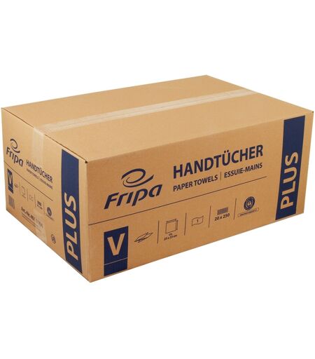 Fripa Papierhandtuch 1-lagig, Natur, 20 x 250 Stk. (5000) passend für Tork Papierhandtuch, 25x23 cm, 1-lagig, natur, V-Falz, 5000 Stück Geliefert werden 20 Packungen à 250 Stück, ergibt 5000 Stück Das passende hochwertige Papier für Falttuchspender in V-Falz (Zick Zack) bekannt von WCs ...
