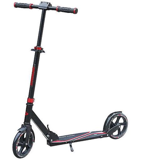 Der Street Master aus dem Hause Schildkröt ist ein edler und hochwertige 200mm Aluminium- Scooter, mit dem auch Erwachsene bspw. auf dem Weg zur Arbeit eine gute Figur machen. Die umfangreiche Verstellbarkeit des Lenkers, das XXL-Deck, das dezente Design in schwarz mit farbigen Designelementen aus farblich eloxiertem Aluminium machen den Street Master zum absoluten Hingucker. Details: Das lange und breite Deck (46 x 13 cm) aus hochwertigem Aluminium ist abgesenkt Die Tieferlegung und der abgesenkte Schwerpunkt verleiht dem Scooter auch bei flotterer Fahrt ein sicheres Fahrverhalten Die Kasten-Konstruktion auf der Deck-Unterseite macht den Street Master deutlich verwindungssteifer und robuster Die Oberfläche des Decks ist mit einem Design-Griptape bezogen Diese raue Oberfläche sorgt für sicheren und rutschfesten Stand während der Fahrt Zusätzlich verfügt der Street Master über einen „Kick-Ständer" Dieser unten am Deck befindliche Ständer sorgt dafür, dass der Street Master jederzeit sicher abgestellt werden kann Der Lenker und das Lenkrohr sind ebenfalls aus hochwertigem Aluminium gefertigt Der Lenker ist sehr breit (47cm), das Fahren ist somit wesentlich angenehmer und entspannter – speziell auch für Erwachsene Die klappbaren Lenkerenden ermöglichen einen kompakten Transport in der Bahn oder im Auto Das von vielen Scootern bekannte lästige Klappern der Lenkerenden wird durch einen zusätzlichen Schnellspann-Verschluss am Lenkerkopf verhindert Am Lenker sind TPR-Griffe montiert, die sehr angenehm in der Hand liegen Die Griffe sind durch jeweils zwei Schellen gegen das Verrutschen und Verdrehen gesichert Das Lenkrohr ist mit einer robusten Doppelklemme (2 Inbus-Schrauben) an der Gabel montiert Die Lenkstange ist vierfach höhenverstellbar (76-100cm) und mit einer Doppelklemme fixiert Die großen 200 mm Räder aus griffigem PU laufen wesentlich besser auch auf unebenen und schlechten Straßen, als kleinere Räder Die hochwertigen ABEC7 Radlager sorgen für einen leichten Lauf des Rollers Am Hinterrad befindet sich eine robuste Hi-Performance Bremse aus Stahl (für geringeren Abrieb und lange Haltbarkeit), welche gleichzeitig als Schutzblech wirkt Am Vorderrad befindet sich ein extra Schutzblech Die Gabel vorne ist ebenfalls aus Stahl ALLE anderen Teile sind komplett aus Aluminium gegen Korrosion und für ein möglichst geringes Gewicht von nur 4,5kg Maximale Belastung 100 kg – somit auch für Erwachsene geeignet Der Scooter wird vormontiert in einem Transportkarton geliefert Mit dem beiliegenden Inbus Schlüssel kann der Lenker leicht und ohne größere handwerkliche Begabung montiert werden Warnhinweise: Vor Benutzung Gebrauchsanleitung lesen und beachten / nur mit geeigneter Schutzausrüstung benutzen / Nicht im Straßenverkehr verwenden / maximales Nutzergewicht 100kg / Vor jeder Fahrt alle Komponenten auf festen Sitz und Unversehrtheit überprüfen / Nicht bei Dunkelheit oder schlechten Sichtverhältnissen fahren / Nur auf geeigneten Flächen die eben, sauber und... ...