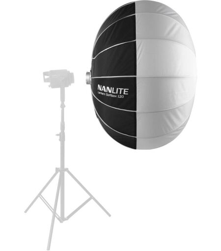Nanlite 120cm Lantern-Softbox LT-120 Gleichmäßige, weiche Ausleuchtung Abstrahlwinkel 270 Grad Ungeeignet für Halogen- oder Glühlampen Einfacher Auf- und Abbau Kugelförmiger Leuchtenvorsatz für gleichmäßige, weiche und omnidirektionale Umgebungs-Ausleuchtung und zur Reduzierung von Schatten. Abstrahlwinkel 270 Grad. Für LED-Leuchten/Scheinwerfer bis max. 500 W und Blitzköpfe mit Bowens-Bajonettanschluss. Nicht geeignet für ...