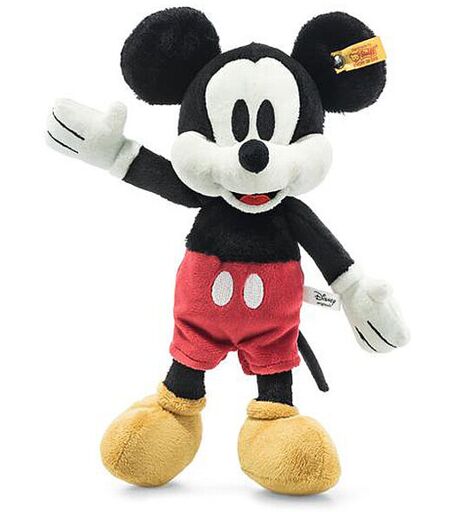 Der 31 cm große Disney Originals Micky Maus aus kuschelweichem Plüsch sprüht vor Ideen: Die weißen Handschuhe fliegen, lachende Augen ergänzen die liebevoll geformte Schnauze mit geöffnetem Mund und Kugelnase. Granulatsäckchen im Gesäß lassen Micky sicher sitzen. Die legendären Ohren, die rote Hose und die prächtigen gelben Schuhe sind Ehrensache: Dieser Micky ist ein stolzer Nachfolger der ersten lizenzierten Micky Maus Spielfigur weltweit – 1931 erschienen bei Steiff. Material: 100% Polyester Pflegehinweis: waschmaschinenfest bei 30° C Schützknopf mit Edelstahl „Knopf im Ohr” Hinweis: Der Artikel wird derzeit umgestellt und kann bei Auslieferung bereits eine ecru-dunkelgraue Ohrfahne statt der bekannten gelb-roten tragen. ...