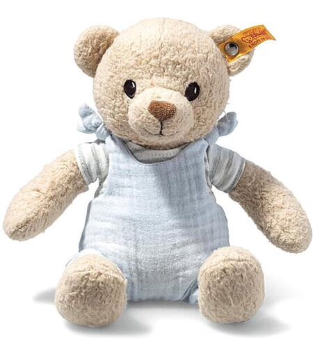 Aller guten Dinge sind drei! Und sind sie nicht einfach süß, unsere drei jüngsten Teddybären Noah, Nele und Niko? Aus geprüften, GOTS-zertifizierten Materialien, in sanften Farben, schmuseweich aus Plüsch mit Hosen aus weicher Baumwolle, die an die vertraute Struktur von Mullwindeln angelehnt ist. Die drei lieben Begleiter sind perfekte erste Freunde für kleine Weltentdecker. Niko trägt eine hellblaue Hose und ist genau der richtige Teddybär für alle, die pastellige Farbtöne lieben. Material aus flauschiger Baumwolle (kontrolliert biologischer Anbau) Pflegehinweis: Handwäsche Schützknopf mit Edelstahl „Knopf im Ohr” Hinweis: Der Artikel wird derzeit umgestellt und kann bei Auslieferung bereits eine ecru-dunkelgraue Ohrfahne statt der bekannten gelb-roten tragen. ...