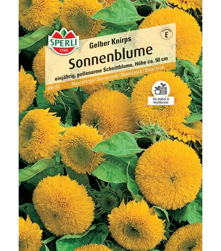 Sperli Sonnenblume Gelber Knirps F1 Produktnummer: 0693109594 Diese niedrige, gefüllte Sorte ist einjährig, standfest und auch als Schnitt blume gut zu verwenden. Die Stiele kurz in kochendes Wasser stecken, dann halten sich die Blüten länger in der Vase. Pflanzzeit Direktsaat: April, Mai, Juni Pflanzzeit Vorkultur: März, April Standort: halbschattig, sonnig Blütezeit: August, September, Oktober Lebensdauer: einjährig Blütenfarbe: gelb Keimdauer: 7 - 14 Tage Kulturdauer: 16 Wochen optimale Keimtemperatur: 15 - 20 °C Pflanzabstand: 40 cm Pflanztiefe: 1 - 2 cm Wuchshöhe: 40 - 50 cm Botanischer Name: Helianthus annuus Inhalt reicht für ca. 30 Pflanzen ...