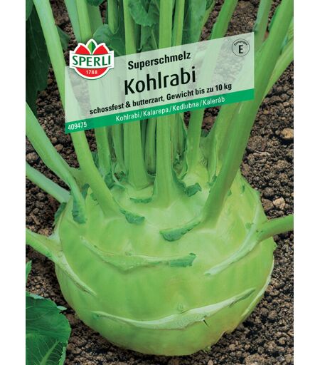 Sperli Kohlrabi Superschmelz Produktnummer: 0693109749 Der Kohlrabi Superschmelz ist eine bewährte, späte, schossfeste Sorte, die kräftig wächst und außergewöhnlich große und schwere Knollen mit einem durchschnittlichen Gewicht von 3 bis 4 kg pro Knolle bildet. Das weiße bis hellgrüne Fleisch bleibt trotz dieser Größe butterzart und wird nicht holzig. Superschmelz ist eine ideale Herbst - und Lagersorte, die geschnitten als Salat, gedünstet, geschmort oder für Eintöpfe verwendet werden kann. An sonnigen oder halbschattigen Plätzen im Gemüsebeet wächst er prächtig, benötigt während der Kultur aber mehrfach Dünger, Kompost und reichlich Feuchtigkeit. Pflanzzeit Direktsamen: April, Mai Pflanzzeit Vorkultur: März, April, Mai Standort: halbschattig, sonnig Erntezeit: August, September, Oktober, November Zum Verzehr geeignet Lebensdauer: einjährig Keimdauer: 7 - 14 Tage optimale Keimtemperatur: 15°C - 20°C Pflanztiefe: 0,5 - 1 cm hoher Ertrag (F1): nein Botanischer Name: Brassica oleracea Winterhart: nein Inhalt reicht für ca. 55 Pflanzen ...
