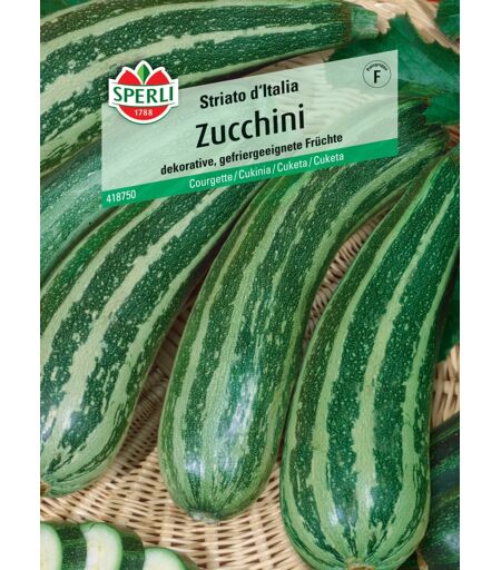 Sperli Zucchini Striato d'Italia Produktnummer: 0693109680 Die Zucchini Striato dItalia bringt einen hohen Ertrag an sehr attraktiven Früchten, die bei einer Länge von ca. 20 cm geerntet werden können. Zudem können die großen Blüten hervorragend zur Dekoration oder als Delikatesse verwendet werden. Die zylindrischen Früchte sind grün gesprenkelt und leicht weiß gerippt und können auch eingefroren werden. Als schmackhaftes, kalorienarmes Feingemüse sind sie vor allem in der mediterranen Küche willkommen. An einer sonnigen Stelle mit einem nährstoffreichen und humosen Boden können die Samen von Mai bis Juni ausgebracht werden. Möglich ist aber auch eine Vorkultur von März bis Mai. Wird regelmäßig gewässert und gedüngt, fällt die Ernte von Juni bis Oktober üppig aus. Pflanzzeit Direktsamen: Mai, Juni Pflanzzeit Vorkultur: März, April, Mai Standort: sonnig Erntezeit: Juli, August, September, Oktober Zum Verzehr geeignet Lebensdauer: einjährig Keimdauer: 7 - 14 Tage optimale Keimtemperatur: 20°C - 24°C Pflanztiefe: 2 - 3 cm hoher Ertrag (F1): nein Botanischer Name: Cucurbita pepo Winterhart: nein Inhalt reicht für ca. 15 Pflanzen ...
