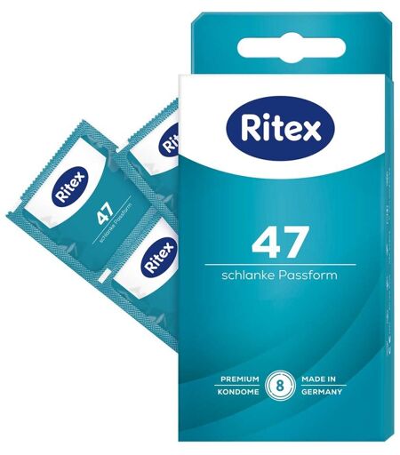Anwendungsgebiet von Ritex 47 KondomeRitex 47 Kondome bietet mit ihrem Umfang von 94 mm statt dem Ritex Standard von 106 mm gerade bei schlankeren Penisgrößen ein besonders sicheres Gefühl. Der angenehm feste Sitz ermöglicht so ein intensives Gefühlserlebnis. Der Produktname "47" leitet sich von der Breite des flachliegenden Kondoms (= halber Umfang) ab. Ritex 47 Kondome sind dermatologisch getestet und haben eine sehr gute Hautverträglichkeit. Das besondere Waschverfahren verleiht allen Ritex Kondomen einen angenehmen Geruch. Darüberhinaus werden alle Ritex Kondome ökologisch und sozial nachhaltig hergestellt. Ressourcenschonung, der Einsatz von ÖKO-Strom und ÖKO-Gas sowie die Förderung sozial fairer Arbeitsbedingungen gehören zu den obersten Prinzipien der Unternehmensführung. Medizinprodukt der Klasse II b Geprüft nach EN ISO 4074. Ritex Kondome werden aus Rohstoffen bester Qualität ausschließlich in Deutschland hergestellt. Jedes Kondom wird einzeln elektronisch auf Dichtheit geprüft. Dermatologisch getestet. Premium Qualität Made in Germany. Wirkstoffe / Inhaltsstoffe / ZutatenRitex 47 Kondome enthält:Inhalt: 8 Ritex Kondome aus Naturkautschuklatex, transparent, glatte Oberfläche, zylindrisch, mit Reservoir, Breite (flachliegend) 47 mm, Gleitmittel Dimeticon. GegenanzeigenBei bekannter Überempfindlichkeit gegenüber einem der oben genannten Inhaltsstoffe sollte das Produkt nicht verwendet werden. DosierungAnwendung von Ritex 47 Kondome: Siegelbriefchen behutsam an der Zackenkante aufreißen. Bitte beachten Sie, dass z. B. Fingernägel, Schmuck oder Piercings im Intimbereich das Kondom beschädigen können. Bevor Penis und Körper des Partners sich berühren, das Kondom über den steifen Penis abrollen. Vorhaut ganz zurückziehen, Reservoir mit Daumen und Zeigefinger sanft zusammendrücken, mit Abrollrand nach außen auf die Eichel setzen und das Kondom vollst� ...