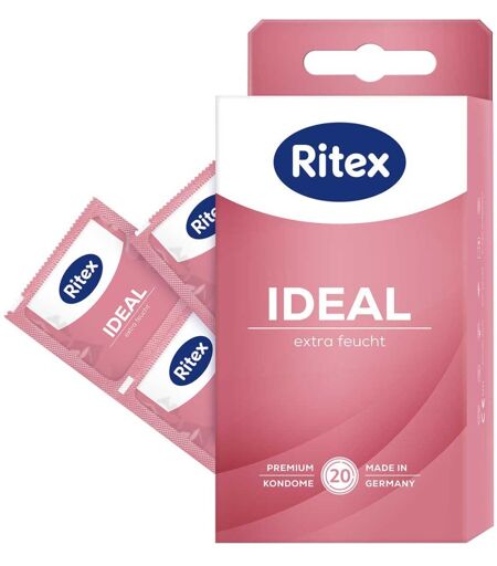 Anwendungsgebiet von Ritex Ideal KondomeRitex Ideal Kondome sind mit 50% mehr Gleitmittel befeuchtet als Ritex Standardkondome. Sie unterstützen vom ersten Moment an die natürliche Gleitfähigkeit - für entspannten und intensiven Sex. Dank ihrer seidenglatten Oberfläche können IDEAL Kondome sehr leicht abgerollt werden. Ritex IDEAL Kondome sind dermatologisch getestet und haben eine sehr gute Hautverträglichkeit. Das besondere Waschverfahren verleiht allen Ritex Kondomen einen angenehmen Geruch. Darüberhinaus werden alle Ritex Kondome ökologisch und sozial nachhaltig hergestellt. Ressourcenschonung, der Einsatz von ÖKO-Strom und ÖKO-Gas sowie die Förderung sozial fairer Arbeitsbedingungen gehören zu den obersten Prinzipien der Unternehmensführung. Medizinprodukt der Klasse II b Geprüft nach EN ISO 4074. Ritex Kondome werden aus Rohstoffen bester Qualität ausschließlich in Deutschland hergestellt. Jedes Kondom wird einzeln elektronisch auf Dichtheit geprüft. Dermatologisch getestet. Premium Qualität Made in Germany.Wirkstoffe / Inhaltsstoffe / ZutatenRitex Ideal Kondome enthält:Inhalt: 10 Ritex Kondome aus Naturkautschuklatex, zartrosa, glatte Oberfläche, zylindrisch, mit Reservoir, Breite (flachliegend) 53 mm, Gleitmittel Dimeticon. GegenanzeigenBei bekannter Überempfindlichkeit gegenüber einem der oben genannten Inhaltsstoffe sollte dieses Produkt nicht angewendet werden. DosierungAnwendung von Ritex Ideal Kondome: Siegelbriefchen behutsam an der Zackenkante aufreißen. Bitte beachten Sie, dass z. B. Fingernägel, Schmuck oder Piercings im Intimbereich das Kondom beschädigen können. Bevor Penis und Körper des Partners sich berühren, das Kondom über den steifen Penis abrollen. Vorhaut ganz zurückziehen, Reservoir mit Daumen und Zeigefinger sanft zusammendrücken, mit Abrollrand nach außen auf die Eichel setzen und das Kondom vollständig abrollen. Sobald der Pen ...