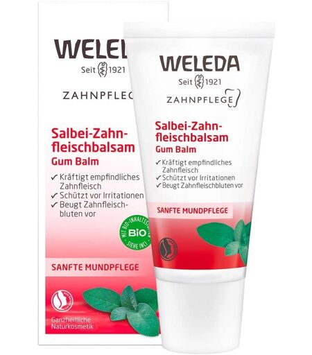 Anwendungsgebiet von Weleda Salbei Zahnfleisch BalsamWeleda Salbei Zahnfleisch Balsam ist ein ganzheitliches Pflegegel zur Kräftigung des Zahnfleisches. Er macht das Zahnfleisch widerstandsfähiger und beugt so Blutungen und Entzündungen vor. Dazu entfaltet er noch einen leicht kühlenden Effekt, was bei irritiertem Zahnfleisch äußerst angenehm ist. Auszüge aus Salbei und Kamille, welche als traditionelle Hausmittel in der Mundraumbehandlung gelten, unterstützen die Regeneration und Heilung von empfindlichem Zahnfleisch.